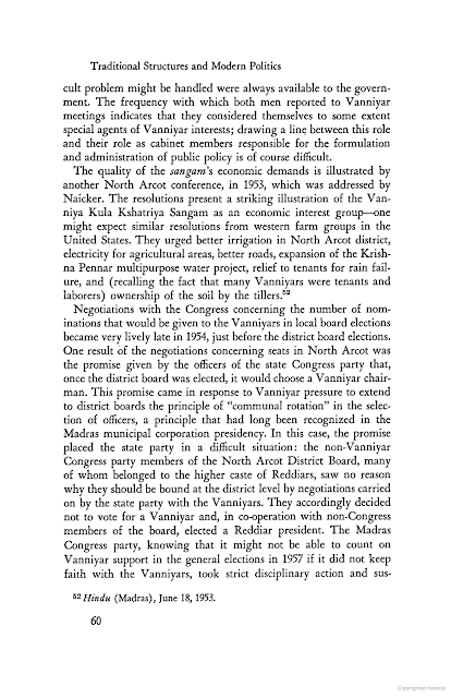 மதராஸ் மாகாணத்தில் காமராஜ் நாடார் என்பவர் காங்கிரஸ் கட்சியின் தலைவராக நேரு இறந்த பின் பொறுப்பில் இருந்தார். அவர் மூலமாக அவரது சமுதாயம் பல முன்னேற்றங்களை பெற்று வந்தது. கார்ல் மார்க்ஸ் சாணார் என்னும் சாதியையும் அவர்கள் இந்து மதத்தில் தீண்ட தகாதவர்களாக கள் இறக்கும் பனமேறிகளாக வாழ்கை நடத்தியவர்கள் என்று குறிப்பிடுகிறார். ஆனால் கடந்த அரை நூற்றாண்டுகளாக அவர்கள் பல அமைப்புகள் புதிய நடவடக்கைகள் மூலம் தங்களை உயர்ந்தவர்களாக காட்டி வருகிறார்கள்.