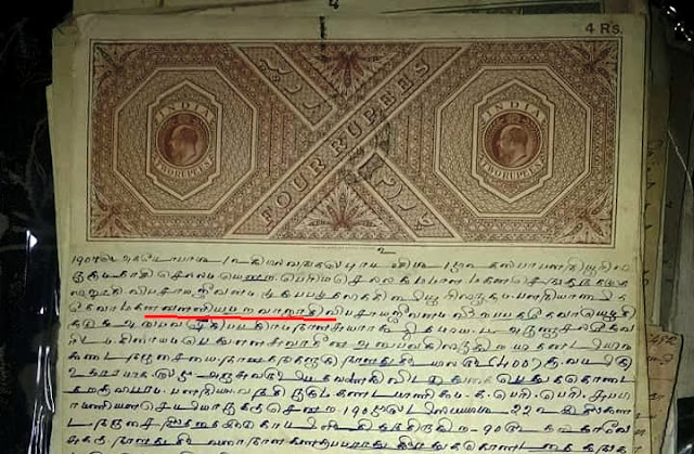 1898 ஆம் ஆண்டில் ஆதாவது சுதந்திரத்திற்கு முன் ஆங்கிலேயர் ஆட்சியில் பழனியில் இருந்த மறவர் மடம் ஒன்றின் தலைவர் அப்போதைய 5 ரூபாய் பத்திரத்தில் நன்கு கவனிக்கவும் விக்டோரியா மகாரானி உருவம் பொரித்த பத்திரத்தில் இந்த வாசகம் வருகிறது.