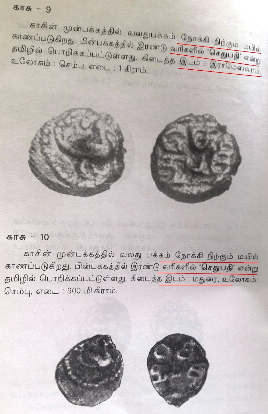 மயில் சின்னம் பொரித்த சேது மன்னவர்கள்.