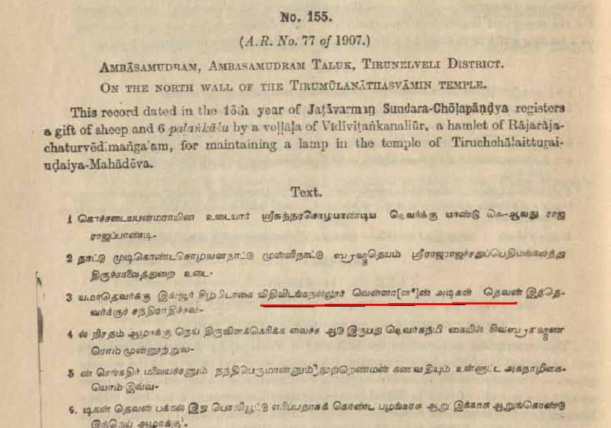 “செங்காட்டிருக்கை இடத்துவளியில் உள்ள குறள் மணீஸ்வரமுடையார் கோயிலில் மூன்று நந்தா விளக்கெரிக்க கொடை கொடுத்தது. ”