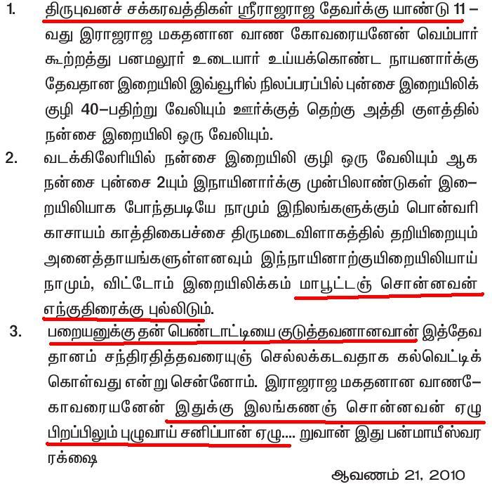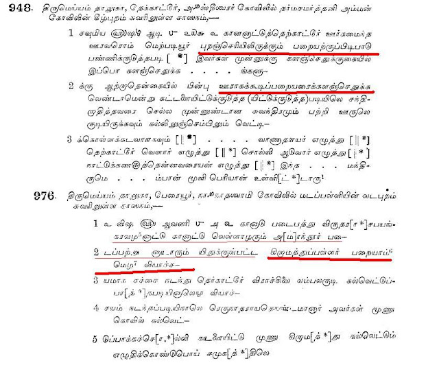 ஒரே கல்வெட்டில் “கம்மாளர் பேறு கனக்கர் பேறு பறையர் பேறு என பறையர்கள் நிலத்தையும்”