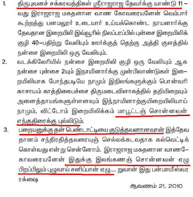 “இதற்கு மாபூடம் சொன்னவன் என் குதிரைக்கு புல்லிடும் பறையனுக்கு பெண்டாட்டியை குடுத்தவனாவன்”