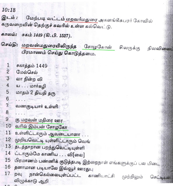 செய்தி: மறவமதுரையிருக்கும் சோழகோன் சிலருகு நிலம் வழங்கியது.
