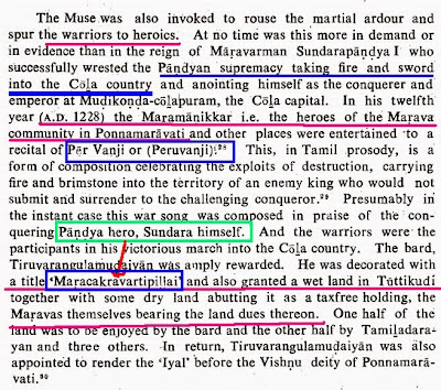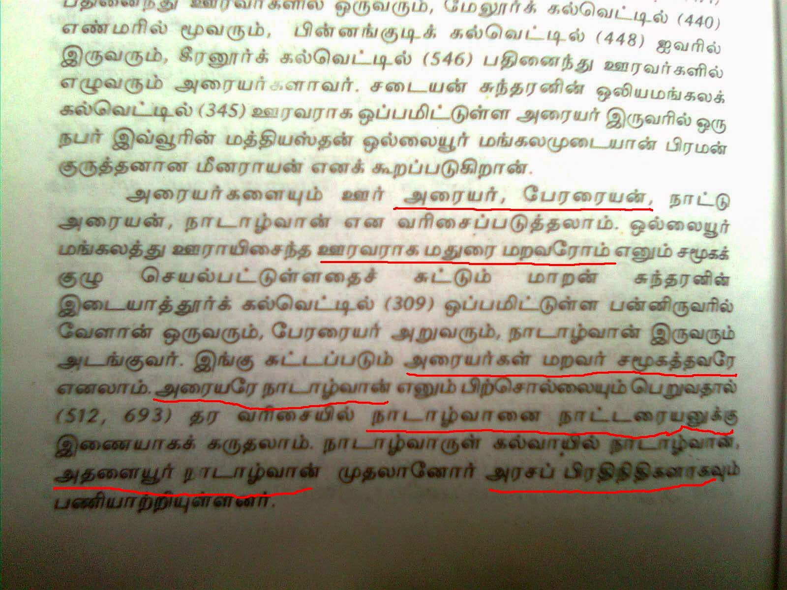 க.என்க.என்(354,727,743),மலையாலங்குடி க.என்(402,403),பெருங்குடி க.என்(364,712).இளஞ்சார்,புலிவலம் க.என்(648,792).படைப்பற்றின் மக்களாக மறவர்களே அரையர்களாகவும்,ஊரவர்களாகவும் செயல்பட்டனர் க.என்(393).இது இரண்டாம் இராஜாதிராஜன் காலத்திய கல்வெட்டு செய்தி (1926:257) உறுதிப்படுத்திகிரது