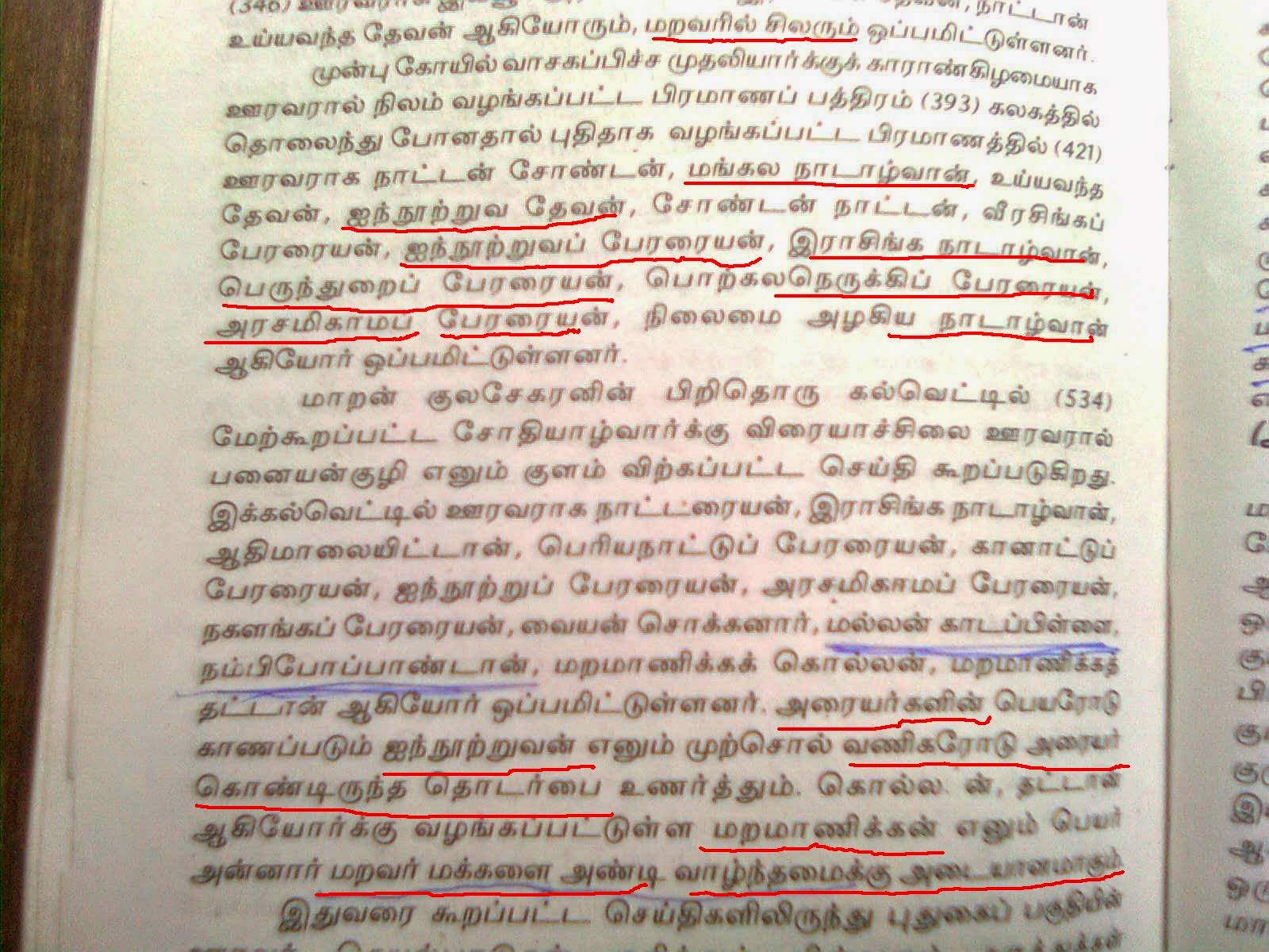 க.என்க.என்(354,727,743),மலையாலங்குடி க.என்(402,403),பெருங்குடி க.என்(364,712).இளஞ்சார்,புலிவலம் க.என்(648,792).படைப்பற்றின் மக்களாக மறவர்களே அரையர்களாகவும்,ஊரவர்களாகவும் செயல்பட்டனர் க.என்(393).இது இரண்டாம் இராஜாதிராஜன் காலத்திய கல்வெட்டு செய்தி (1926:257) உறுதிப்படுத்திகிரது
