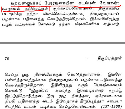 உதாரனமாக குளித்தலை தாலுகா வேமபனூர் திருமாலிஸ்வர் கோவில் பாண்டியன் குலசேகரரன் 14 ஆம் ஆண்டு கல்வெட்டில்.