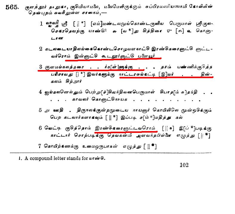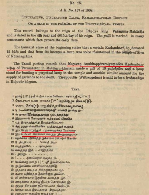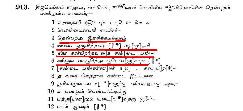 இடம் : கண்டதேவி படி எடுக்கப்பட்ட ஆண்டு அல்லது பதியப்பட்ட ஆண்டு -1921