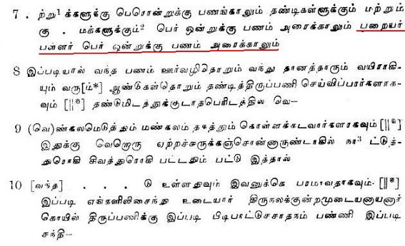 விருதராஜ பயங்கர மங்கலத்தில் படைப்பற்றான விராச்சிலை ஊரவரஓம்………… …………..கம்மாளர் பேறு கன்னகன் பேறு பறயர் பேறு என ……………. வந்துள்ளது. அதே கல்வெட்டில்………..