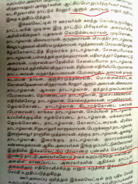 19 ஊரவர் அரையர்கள் பற்றிய கல்வெட்டு புத்தகம் “புதுக்கோட்டை மாவட்ட வரலாறு” இதில் தெளிவாக காட்டியுள்ளனர். மருதாந்த பரையன்(மருதாந்த பேரரயன்),ஐநூற்றுவபரையன்(ஐநூற்றுவபேரரையன்),கிடாரங்கொண்ட பரையன்(கடாரம் கொண்ட பேரரையன்) போன்று தெளிவாக விளக்கம் தந்து இவர்கள் ஆளும் அரையர்கள் என சொல்லபடுகின்றனர்.